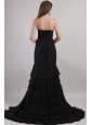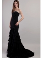 Heads will turn at your arrival. This black strapless mermaid prom dress features a sweetheart neckline which is accented with beadings and the whole bodice is decorated with beadings all the way to the hip. The sparse beadings on the black dress is like stars in the sky. The ruffled skirt has a mini train which adds beauty and grace to the dress.