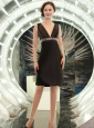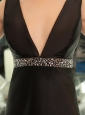 Black V-neck Beaded Decorate Waist Mini-length Column Cocktail Prom Gowns