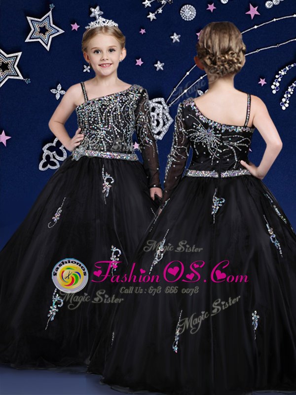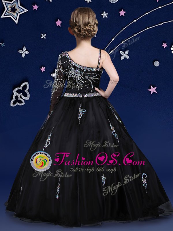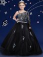 Home >  Special Occasion Dresses >  Mini Quinceanera Dresses > Black Zipper Flower Girl Dresses for Less Beading Sleeveless Floor Length
