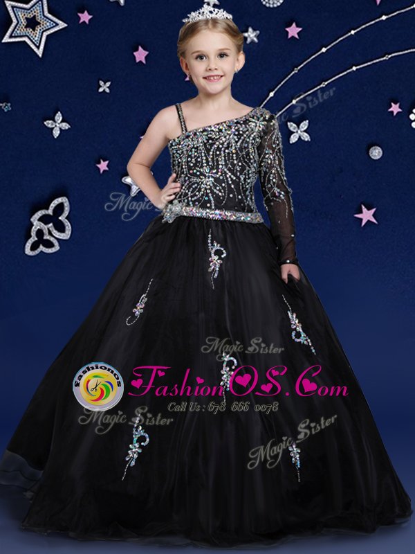 Black Zipper Flower Girl Dresses for Less Beading Sleeveless Floor Length