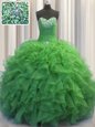 Bling-bling Puffy Skirt Light Yellow Ball Gowns Tulle Sweetheart Sleeveless Beading Floor Length Lace Up Ball Gown Prom Dress