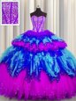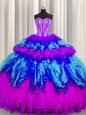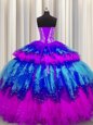 Home >  Quinceanera Dresses >  Perfect Quinceanera Dresses > Bling-bling Visible Boning Multi-color Ball Gowns Tulle Sweetheart Sleeveless Beading and Ruffles and Ruffled Layers and Sequins Floor Length Lace Up Quince Ball Gowns