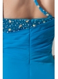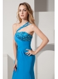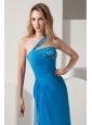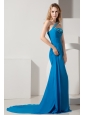 Home >  Prom Dresses >  Beautiful Prom Dresses > Blue A-line One Shoulder Brush Train Chiffon Beading Prom Dress