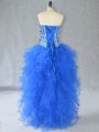 Blue A-line Organza Sweetheart Sleeveless Beading and Ruffles High Low Lace Up Military Ball Gowns