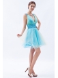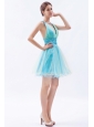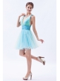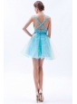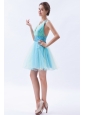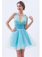 Blue A-line / Princess V-neck Prom / Evening / Homecoming / Cocktail Dress Organza Sequins Mini-length