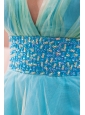 This gorgeous little baby doll gown is a great choice for any formal event, large or small. It features a gathered texture on the bodice, V neck and two shoulder straps. The straps are heavily embellished with lovely sparkling beadwork. A coordinating waist sash cinches the dress in the middle and features the same great beading. The A-line skirt is full and shapely, made from many layers of pretty net. The crossing straps and a zip closure leaves an exposed back which shows your smooth skin. Just a fun little gown to own.