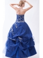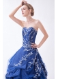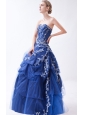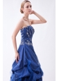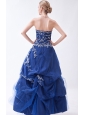 Blue A-line Strapless Prom Dress Appliques Floor-length Taffeta and Tulle