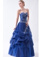 Home >  Prom Dresses >  Beautiful Prom Dresses > Blue A-line Strapless Prom Dress Appliques Floor-length Taffeta and Tulle