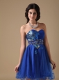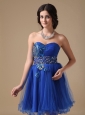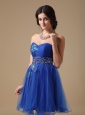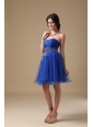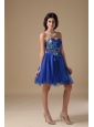 Blue A-line Sweetheart Mini-length Organza Beading Prom Dress