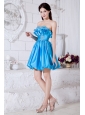 Blue A-line Sweetheart Short Prom Dress Taffeta Beading Mini-length