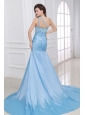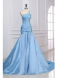 Home >  Prom Dresses >  Popular Prom Dresses > Blue A-Line Sweetheart Taffeta Prom Dresses with Appliques Brush Train