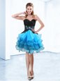 Home >  Prom Dresses >  Perfect Prom Dresses > Blue And Black Sleeveless Mini Length Ruffled Layers Lace Up Prom Gown