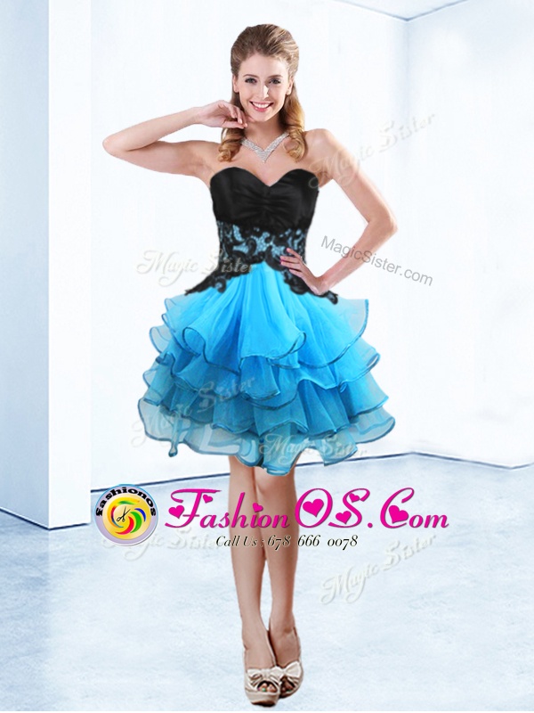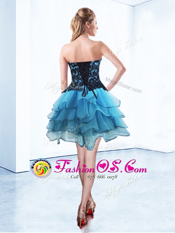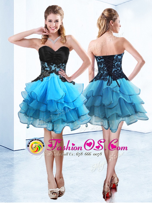 Blue And Black Sleeveless Mini Length Ruffled Layers Lace Up Prom Gown