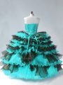 Blue And Black Sweet 16 Quinceanera Dress Sweet 16 and Quinceanera with Beading and Ruffled Layers Sweetheart Sleeveless Lace Up