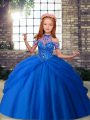 Blue and Peach High-neck Neckline Beading Pageant Gowns For Girls Sleeveless Lace Up