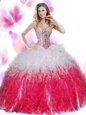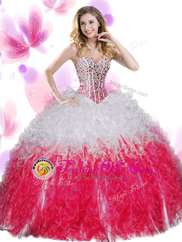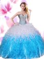 Blue And White Ball Gowns Beading and Ruffles Quinceanera Gown Lace Up Organza Sleeveless Floor Length