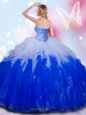 Blue And White Ball Gowns Beading and Ruffles Quinceanera Gown Lace Up Tulle Sleeveless Floor Length