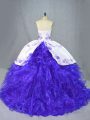 Blue And White Halter Top Lace Up Beading and Embroidery and Ruffles Sweet 16 Quinceanera Dress Brush Train Sleeveless
