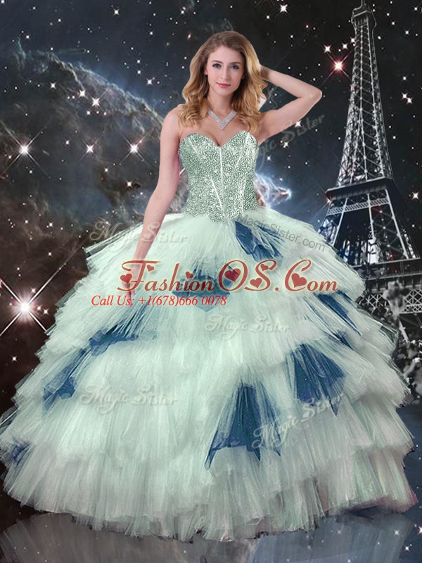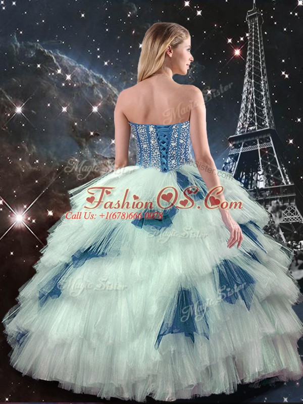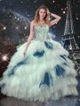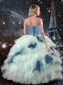 Blue And White Three Pieces Tulle Sweetheart Sleeveless Ruffled Layers Floor Length Lace Up Quinceanera Dress