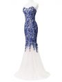 Blue And White Tulle Lace Up Going Out Dresses Sleeveless Brush Train Lace and Appliques