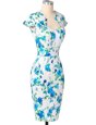 Blue And White Zipper Sweetheart Pattern and Belt Prom Dress Chiffon Cap Sleeves