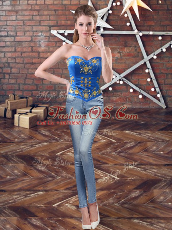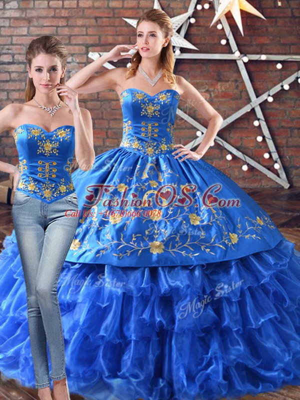 Blue Ball Gowns Embroidery 15 Quinceanera Dress Lace Up Organza Sleeveless Floor Length