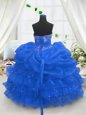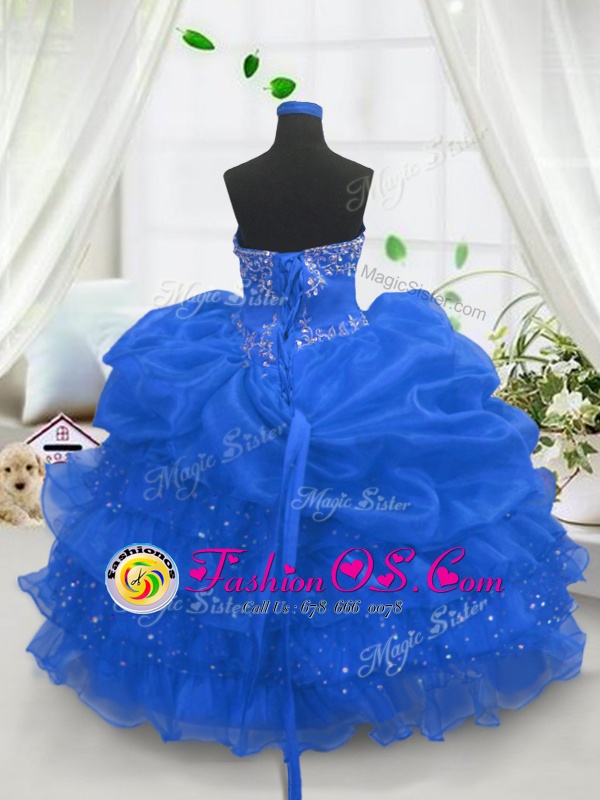 Blue Ball Gowns Organza Sweetheart Sleeveless Beading and Ruffled Layers and Pick Ups Floor Length Lace Up Child Pageant Dress
