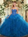 Blue Ball Gowns Tulle Sweetheart Sleeveless Beading and Ruffles Floor Length Lace Up 15 Quinceanera Dress