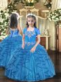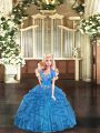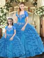 Blue Ball Gowns Tulle Sweetheart Sleeveless Beading and Ruffles Floor Length Lace Up Quinceanera Dresses