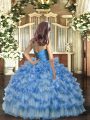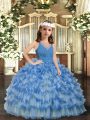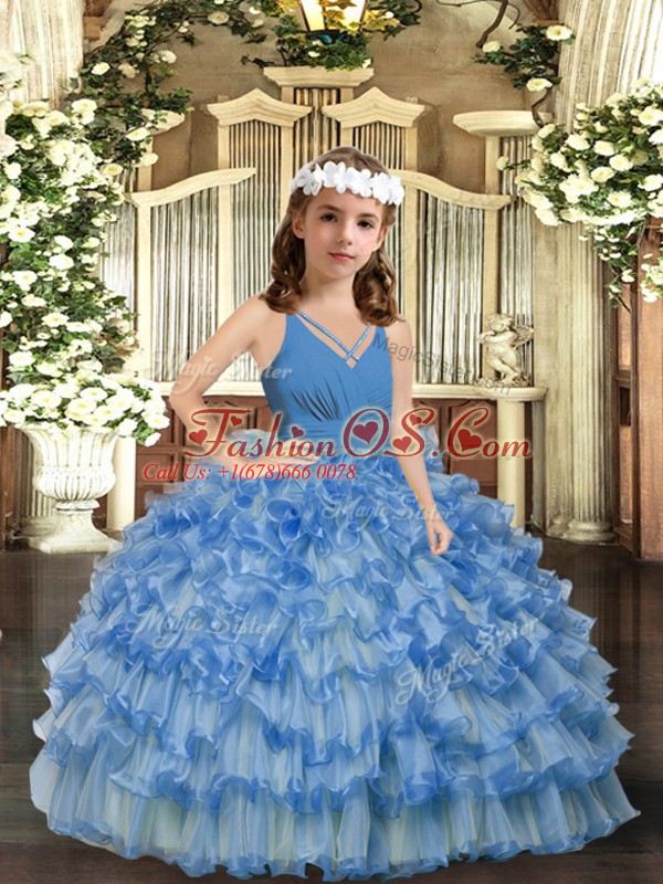 Home >  Special Occasion Dresses >  Lovely Little Girl Pageant Dresses > Blue Ball Gowns V-neck Sleeveless Organza Floor Length Zipper Ruffled Layers Little Girls Pageant Dress Wholesale