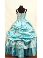 Home >  Special Occasion Dresses >  Little Girl Pageant Dresses > Blue Beaded and Ruch Decorate On Taffeta Flower Girl Pageant Dress With Straps Neckline Zipper-up
