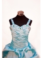 Blue Beaded and Ruch Decorate On Taffeta Flower Girl Pageant Dress With Straps Neckline Zipper-up