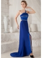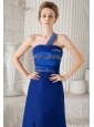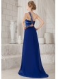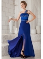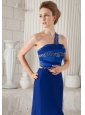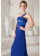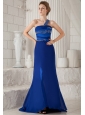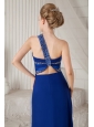 Home >  Prom Dresses >  Beautiful Prom Dresses > Blue Column One Shoulder Brush Train Chiffon and Taffeta Beading Prom Dress