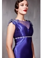 Home >  Evening Dresses > Blue Column / Sheath Bateau Floor-length Taffeta Beading Prom Dress