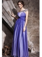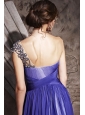 This amazing sexy blue evening gown has a one shoulder strap encrusted with beadings and a pleated bodice. The waist is emphasized with cross ruchings. The partly hidden and partly visible inner layer makes the dress more beautiful. I'm sure the dress will be your taste.