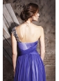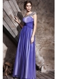 Blue Column / Sheath One Shoulder Floor-length Chiffon Beading and Ruch Prom / Evening Dress