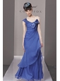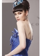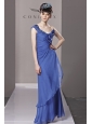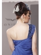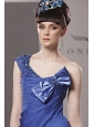 Romantic and elegent!The one should neckline is highlighted with crystals and beads. Ruching continues throughout the bodice.The big bow in the bust area contours your curve. The over lay is in inregullar cut.You will be the most attractive one when you wear this blue floor lengthen prom dress.