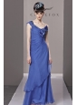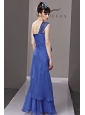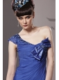 Home >  Prom Dresses >  Discount Prom Dresses > Blue Column / Sheath One Shoulder Floor-length Organza Beading and Bowknot Prom Dress / Evening