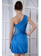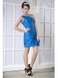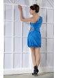 This fabulous blue mini-dress features one shoulder neckline. The skirt was slightly ruched and accented with beading. This stunning dress is for those who persue lovely and grace.