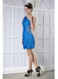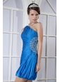 Blue Column / Sheath One Shoulder Mini-length Elastic Woven Satin Beading Prom Dres