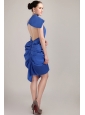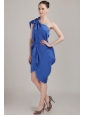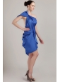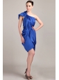 Blue Column / Sheath One Shoulder Mini-length Taffeta Ruch Prom / Party Dress