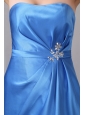 Home >  Prom Dresses >  Cheap Prom Dresses > Blue Column Strapless Beading Prom Dress Ankle-length Satin