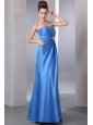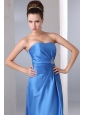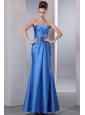 Blue Column Strapless Beading Prom Dress Ankle-length Satin