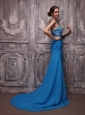 Home >  Prom Dresses >  Discount Prom Dresses > Blue Column Strapless Brush Train Chiffon Appliques Prom / Evening Dress