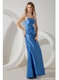 Blue Column Straps Appliques Prom / Evening Dress Floor-length Taffeta