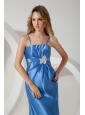 You will look like a million in this elegant blue dress! This one features a spaghetti straps top covered with satin fabric and close fitting to hug curves and outline the silhouette of your body. The dress tends to show off a well-toned body. The ruches and the applique feature the waist area. The back has a hidden zipper finishes a gorgeous look. You're sure to land on everyone's best dress list!