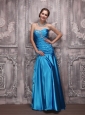 Home >  Prom Dresses >  Beautiful Prom Dresses > Blue Column Sweetheart Floor-length Taffeta Beading and Ruch Prom Dress
