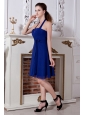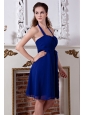 Blue Empire Halter Mini-length Bridesmaid Dress Chiffon Bow
