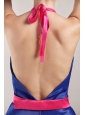 This sexy halter top brush prom dress is featured with the eye catching colors of pink and blue, which makes you feel fresh at first sight.The ruched and specially designed bodice is adorned with tiny white beads which sporadically spread on the surface. The pink band matches the halter perfectly. And the sexy back will make you become the center of the spotlight!
