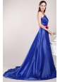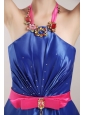 Home >  Prom Dresses >  Cheap Prom Dresses > Blue Empire Halter Top Brush Elastic Woven Satin Beading and Sash Prom / Pageant Dress
